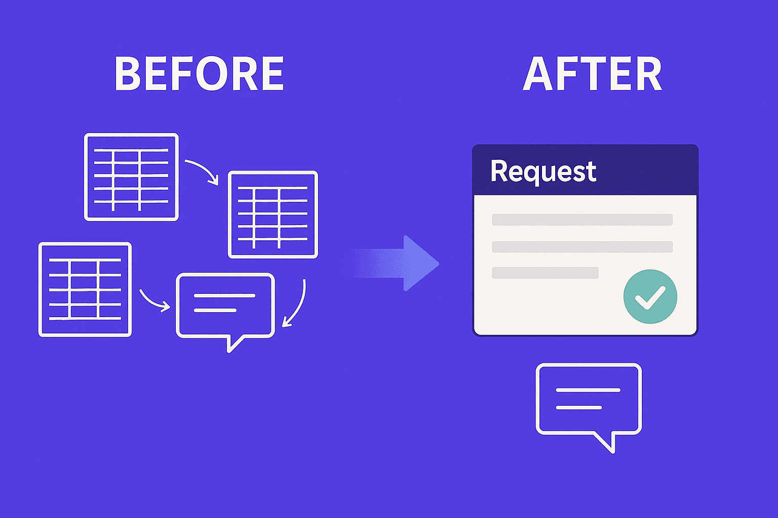 - Communication about a request happened outside the process in chats, emails, and phone calls. Meaning, important details were scattered everywhere.