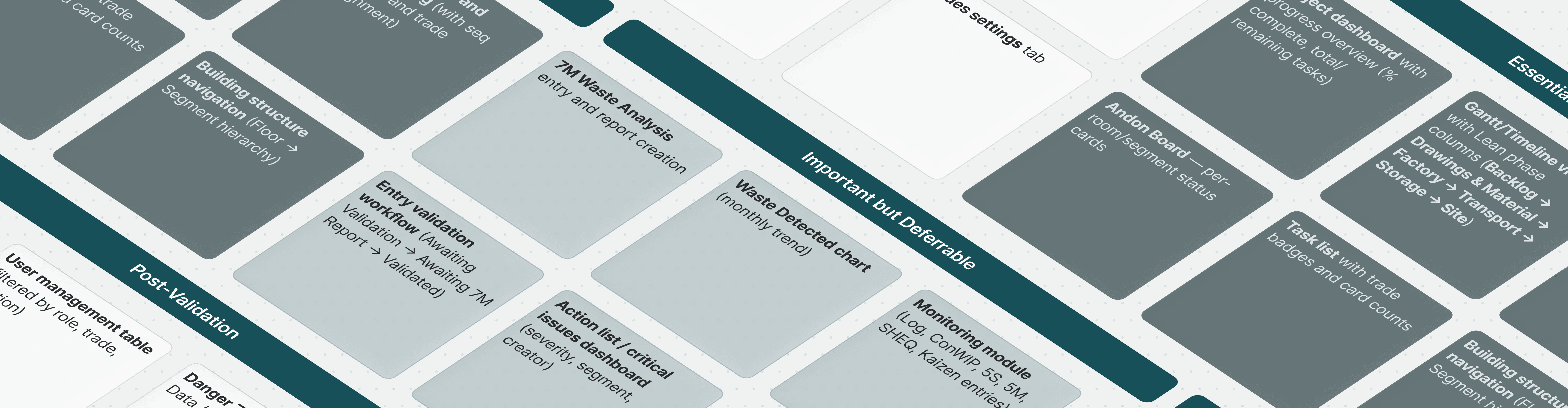 The PoC went through a structured feedback process with the client team and real users from the construction sector. Three critical workflow gaps surfaced that weren't in the original vision, found at prototype stage, where fixing them cost almost nothing.