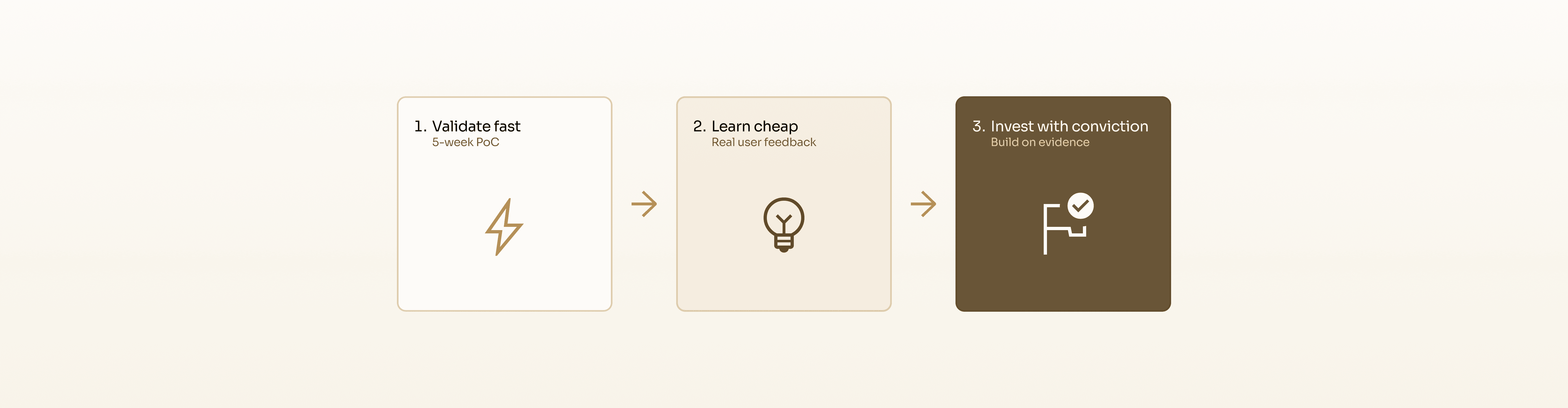 This is the sequence that changes the economics of product development: validate fast, learn cheap, then invest with conviction and with significantly less risk at every step that follows.