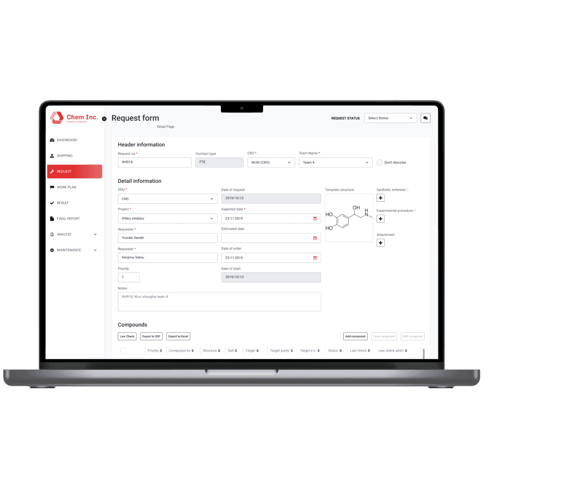 The project focused on transforming the chemical procurement process through the introduction of a unified digital platform. Aimed at streamlining the complex system of requesting and tracking chemical compounds, this initiative tackled the inefficiencies and inaccuracies plaguing the conventional methods. The goal was to boost efficiency, minimize errors, and overhaul both supplier interactions and internal processes, setting a new efficiency benchmark in the chemical industry's procurement practices.